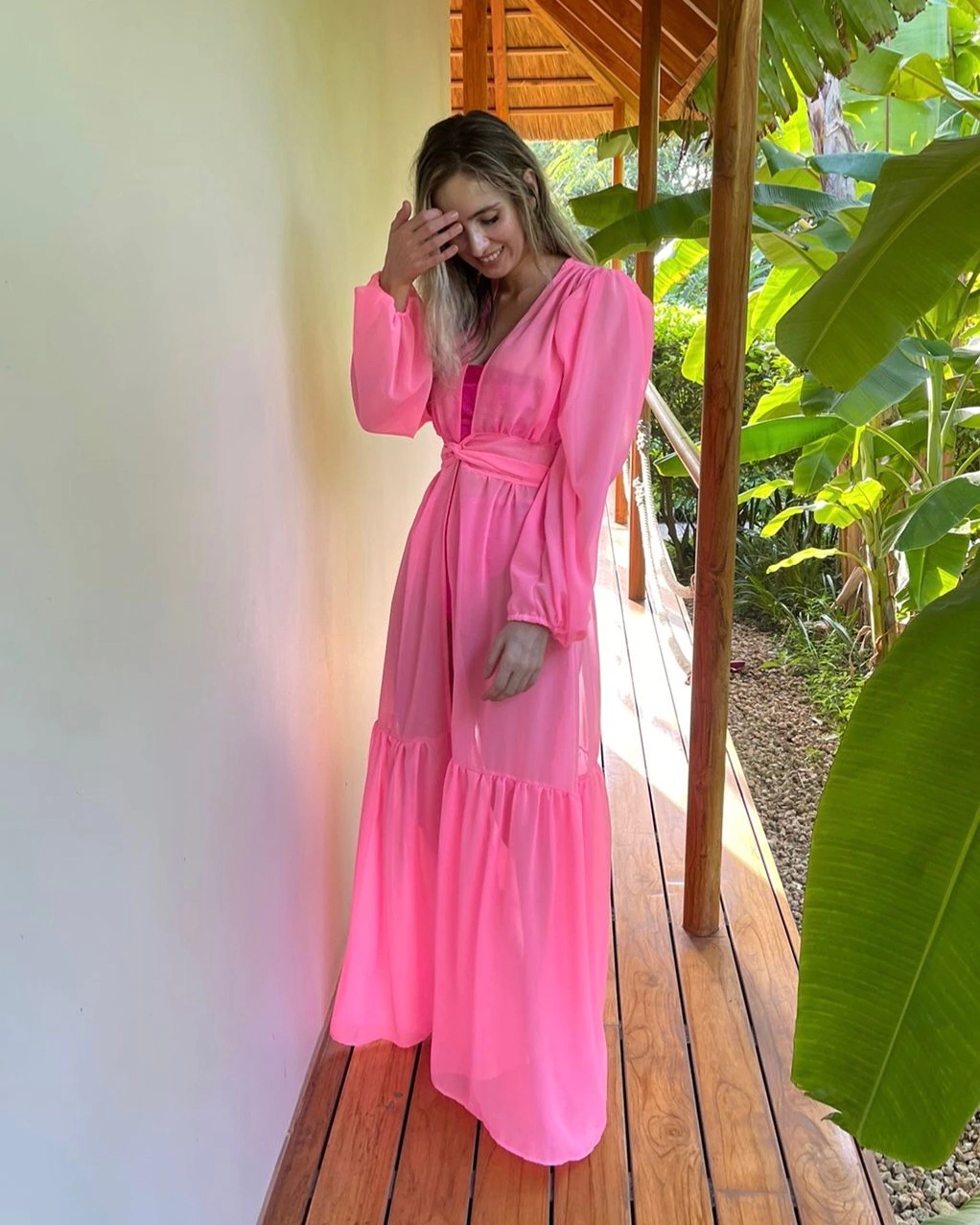 ESPECIFICAÇÕES DO PRODUTO * Saída de praia feminina * Modelo Daniella * Amarração na cintura * Com transparência * Sem estampa * Tecido: Chiffon / Musseline (Tecido Plano) Composição: 100% Poliéster