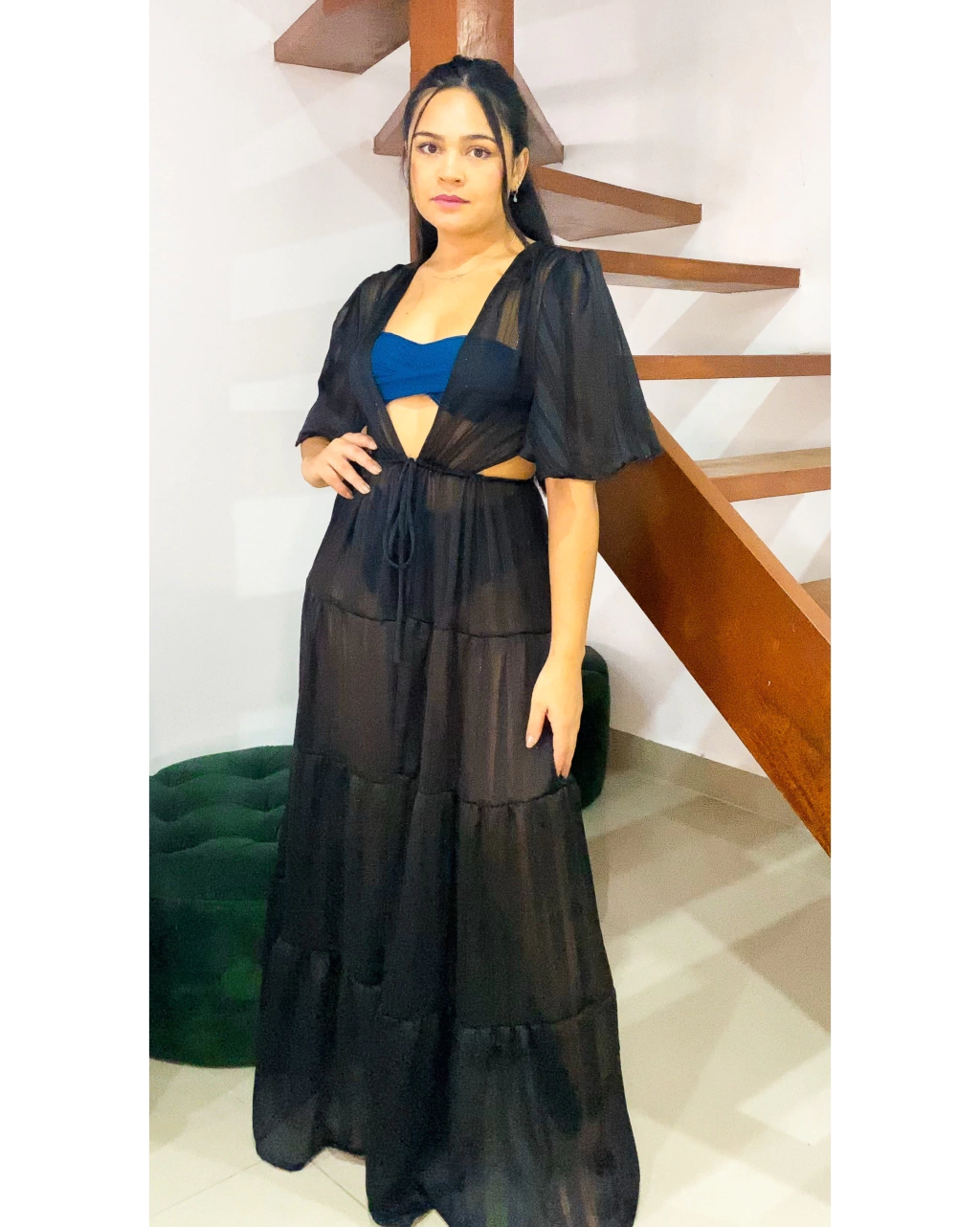 ESPECIFICAÇÕES DO PRODUTO * Saída de praia feminina * Modelo Estela * Amarração na cintura * Com transparência * Sem estampa * Tecido: Chiffon / Musseline (Tecido Plano) Composição: 100% Poliéster